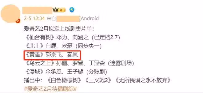 看完女主人選,預感更強烈了,《黃雀》熱度要炸了。