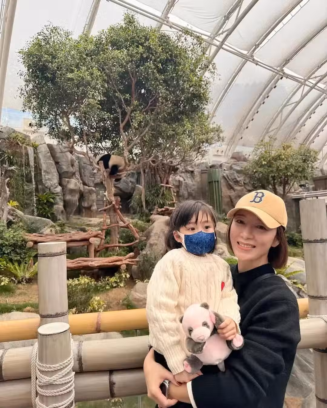 楊怡還抱著女兒跟大熊貓寶寶拍了合影,母女同框好有愛。4歲的小珍珠待在媽媽懷裡好乖呀,雖然戴上了口罩,但也難掩高顏值,真的好漂亮。話說小珍珠手裡拿的熊貓寶寶玩偶真的好逼真呀,軟萌可愛太招人稀罕了,難怪小珍珠都捨不得撒手。