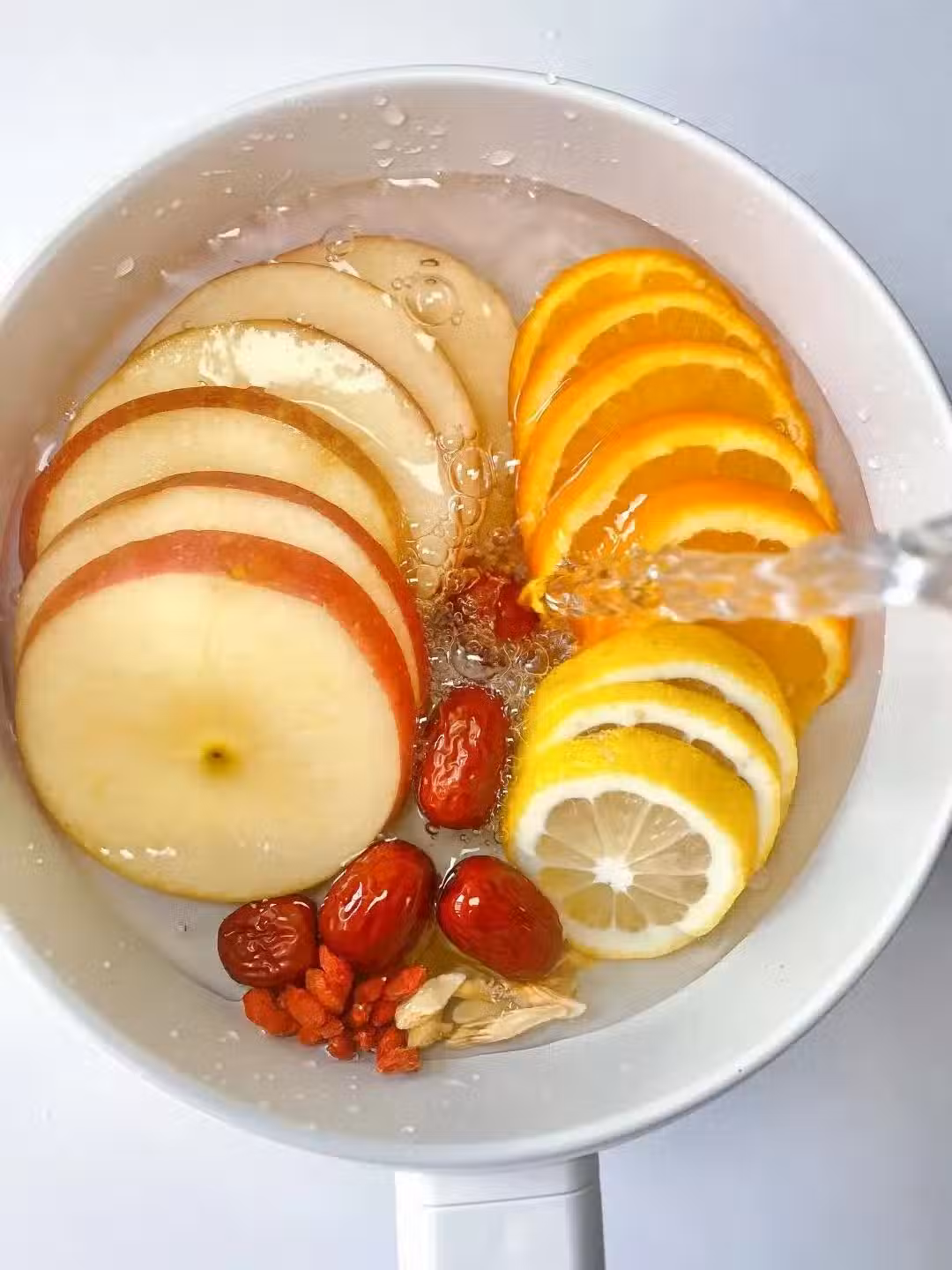 🌈準備食材: 蘋果1個,橙子1個,檸檬3片、枸杞適量、紅棗6顆、黃芪2g