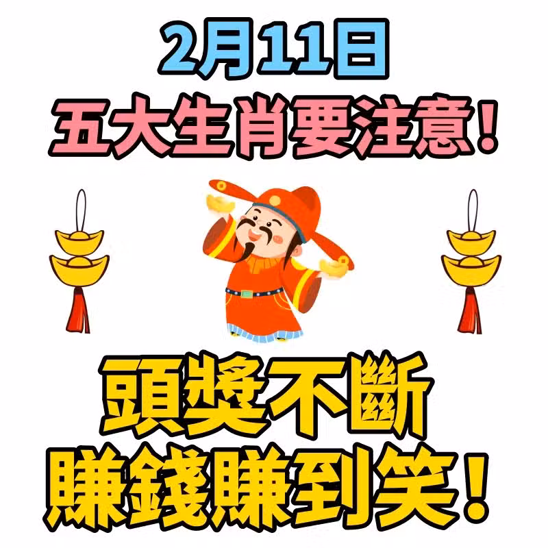 2月11日,五大生肖要注意!頭獎不斷,賺錢賺到笑!