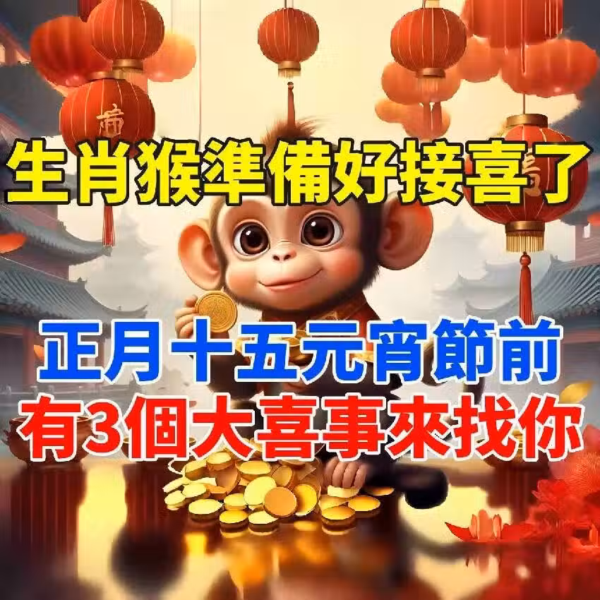 🐵 生肖猴請準備!正月十五元宵節前,3個「大喜事」找上門!家裡有屬猴的快來接福!🎉