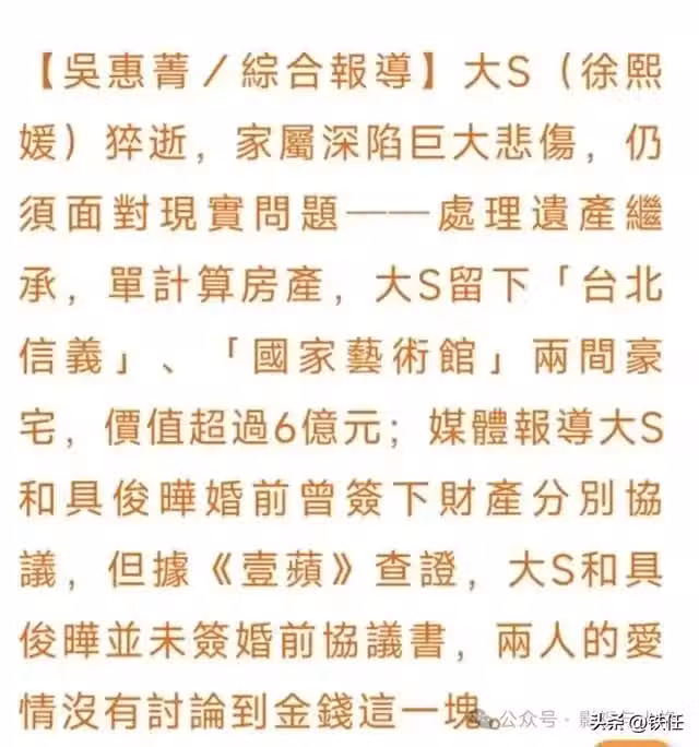 不止台媒,台知名律師也在幫忙造勢,發文稱汪小菲為了孩子著想,應該把撫養權讓給大S的家人,從撫養人變成協助人。