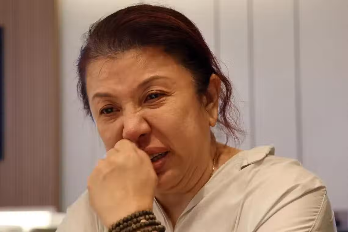 劉玲玲在靈堂接受媒體訪問,談到妹妹劉心玲生前點滴時多次忍不住落淚。(新明日報)