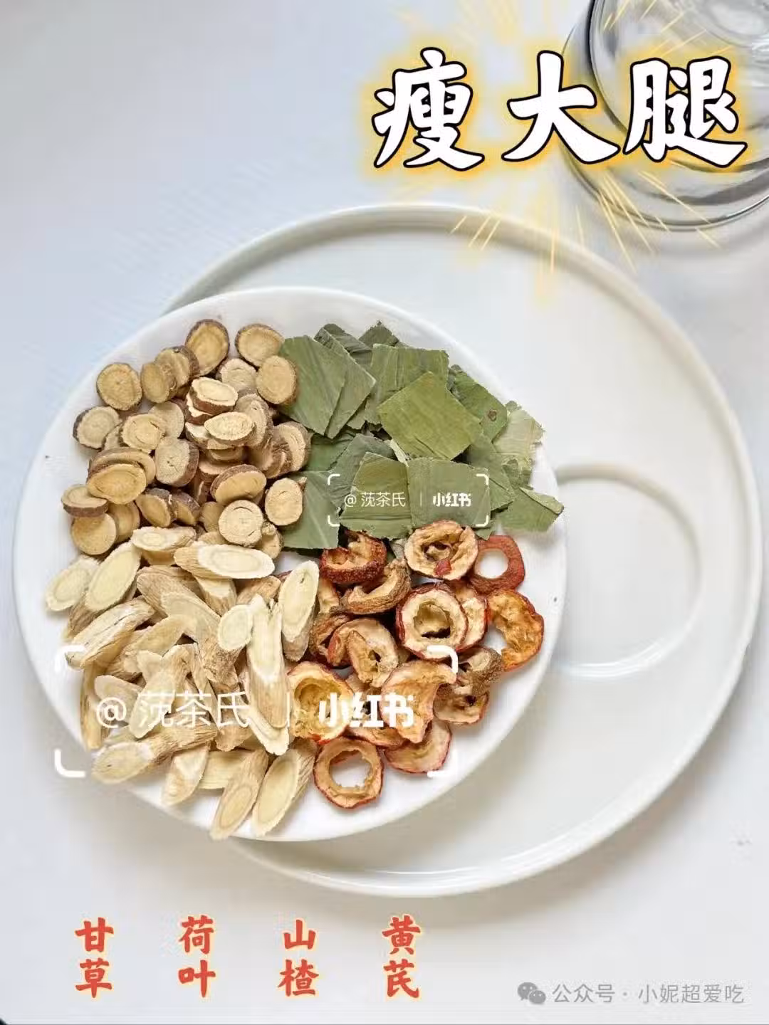 食材:荷葉、黃芪、甘草、山楂。要是大腿肉肉較多,穿褲子容易磨腿,不妨嘗試一下這款,說不定會有新發現。