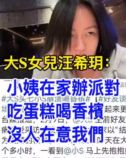 大S女兒汪希玥:小姨在家辦派對,吃蛋糕喝香檳,沒人在意我們!