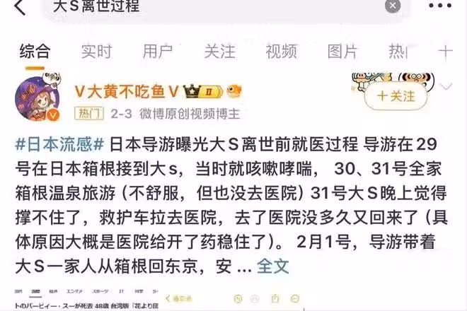 日本網友爆料,大S生前拒絕抽血化驗,事件疑雲重重令人遐想