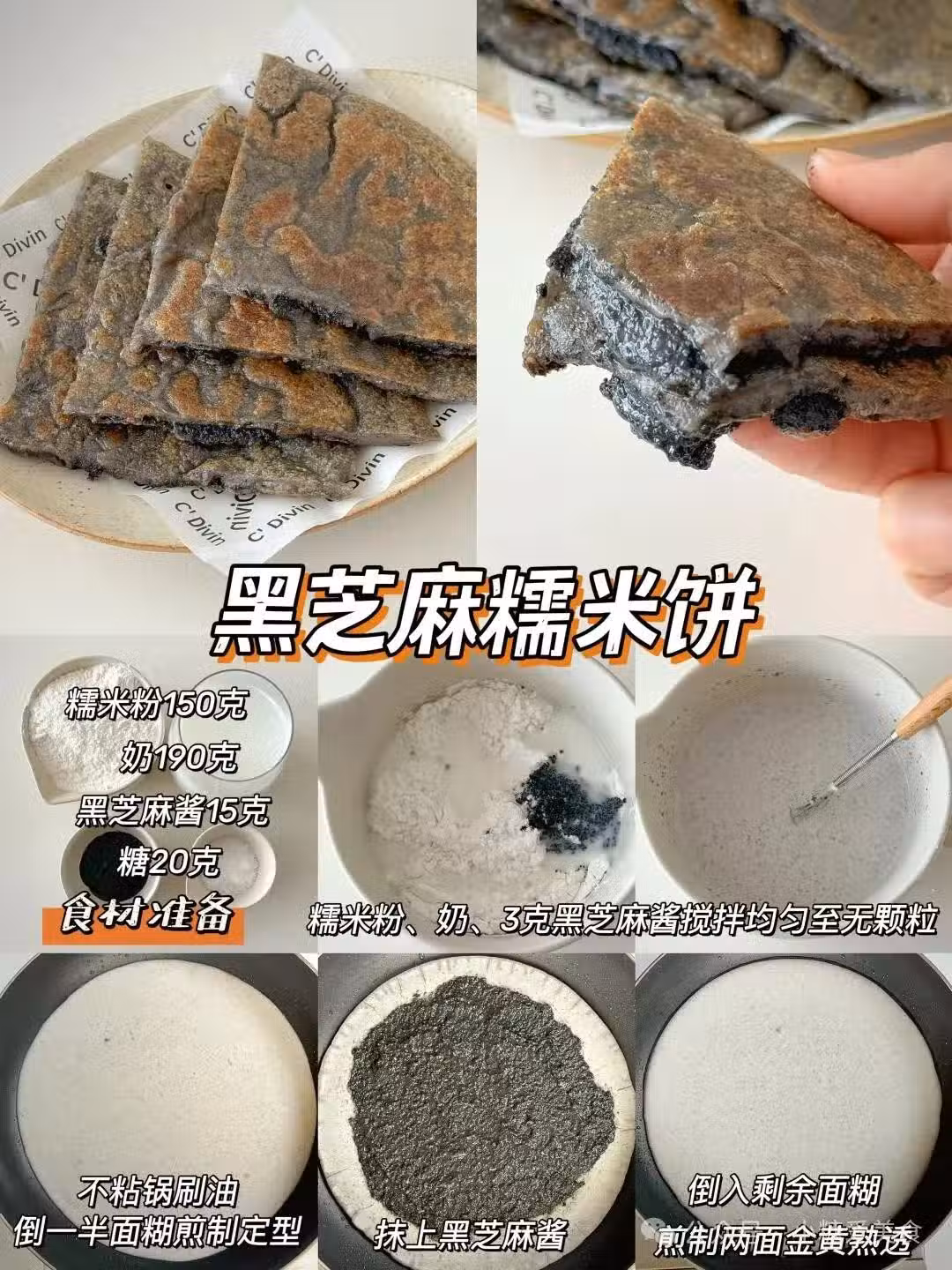 黑芝麻粉+白糖攪成團,包進糯米皮搓圓壓扁。煎完一口下去,香到天靈蓋顫抖!別說防脫髮,光這香味就能讓同事追著你要配方。