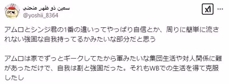 「阿姆羅被布萊特揍,說出那句:『連我爸都沒有打過我!』的台詞,因為經常在廣告之類的地方出現,才會推升大家對於阿姆羅好像畏畏縮縮的印象吧。」