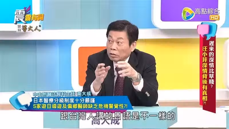 高大成同時透露,S一家去的箱根,「那邊診所的醫師比較懶散,去那裡是想退休,享受好的空氣,看一兩個病人,這樣很爽,在市內很競爭,不認真就被淘汰掉」,高大成總結,溝通上的問題,有時候真的要自己人比較懂。