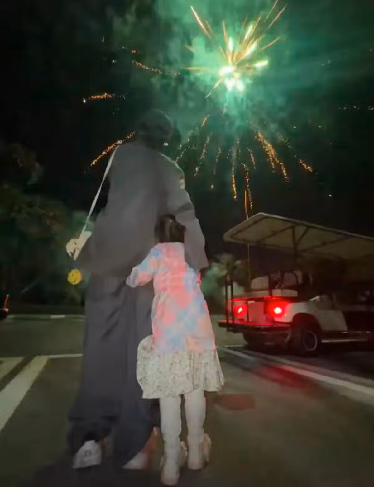 張碧晨罕見曬和女兒合照,母女相擁看煙花,5歲小小晨個子很高了
