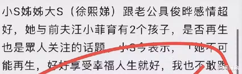 她在公開場合說大S和具俊曄不會生孩子。