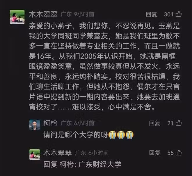 根據這位大學同學與網友的互動可知吳玉燕畢業於廣東財經大學。