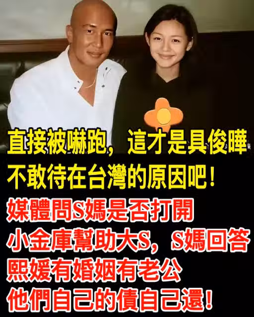 直接被嚇跑,這才是具俊曄不敢待在台灣的原因吧!媒體問S媽是否打開小金庫幫助大S,S媽回答熙媛有婚姻有老公,他們自己的債自己還!