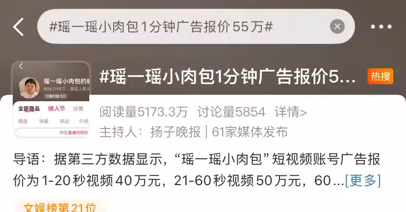 千萬網紅瑤一瑤又上熱搜了。