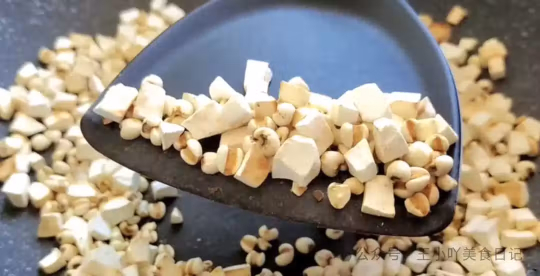 翻炒過程中需不斷翻動,以防炒焦。當茯苓和薏米表面微微泛黃,散發出淡淡的香氣時,即可關火,用粗濾網過濾掉炒制過程中可能產生的碎末,確保茶湯清澈。