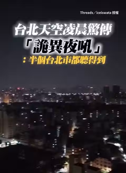該名住在中正區的網友在Threads上分享多段影片,凌晨的夜景中可聽見不尋常,類似用廣播播放的巨大摩擦聲,相當令人不適,或像是桌椅拖地摩擦、兒童哭泣的不明怪聲,「這是什麼聲音?