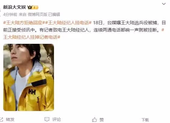 有媒體第一時間聯繫王大陸經紀人,對方卻直接掛斷電話。