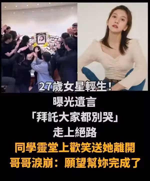 27歲女星輕生!曝光遺言「拜託大家都別哭」走上絕路 同學靈堂上「歡笑送她離開」哥哥淚崩:願望幫你完成了
