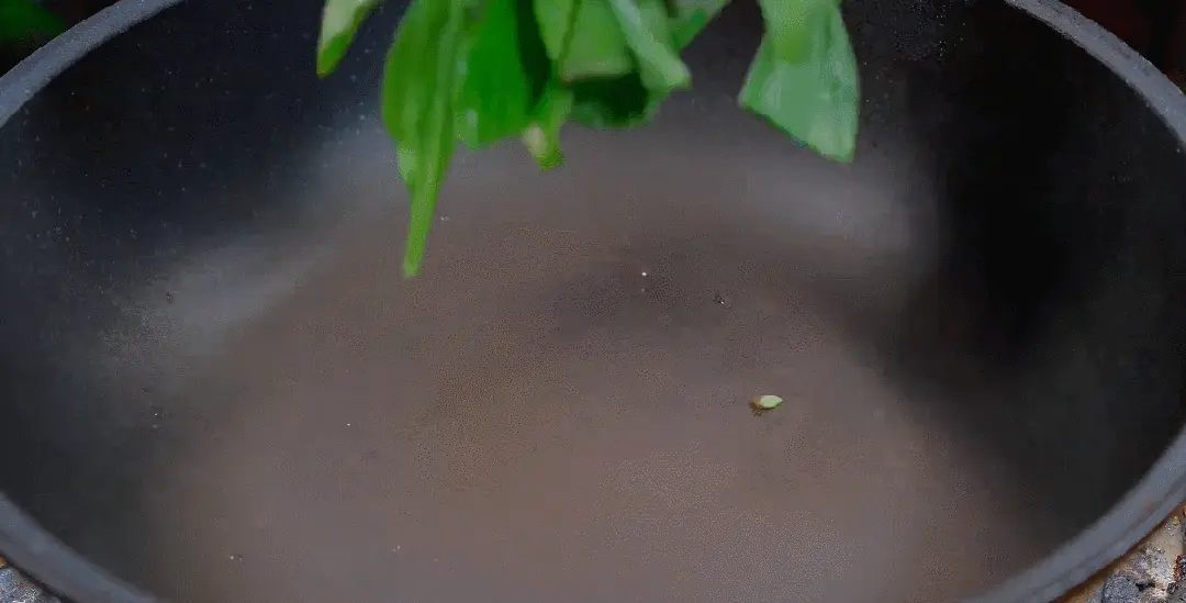 炒制車前草與配料:將處理好的車前草單獨放入鍋中,同樣用最小火翻炒,直至表面水分炒干,微微變軟。此時加入薑絲和紅棗塊,繼續小火翻炒。