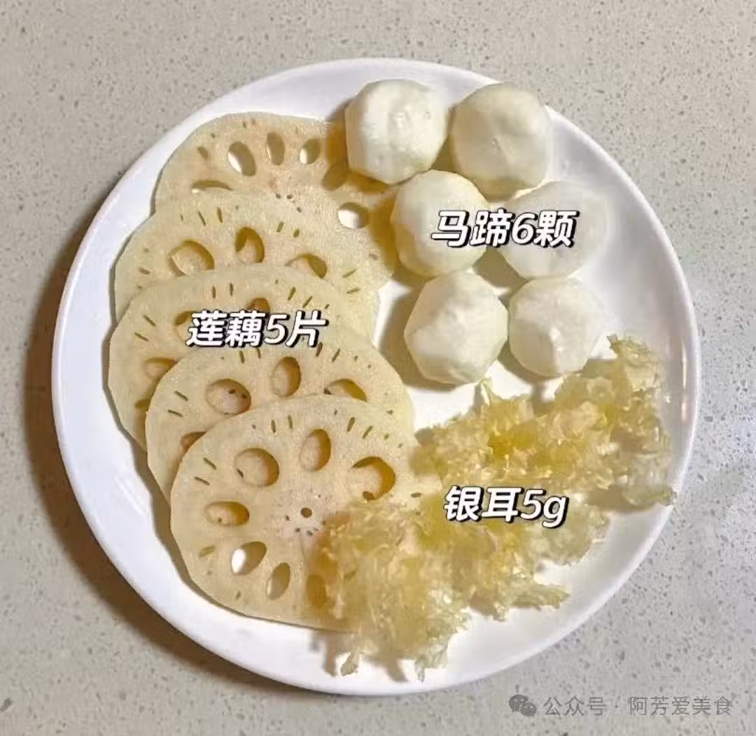 馬蹄和蓮藕還有銀耳,喝起來很好喝,藕片的爽脆和馬蹄一起,更加的爽脆,在搭配銀耳的軟糯香甜,非常的驚艷!