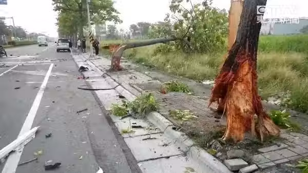 警方表示,車子先撞上機車騎士後,再失控沖向外側人行道,連擦撞兩棵行道樹,反彈迴路面後翻覆。