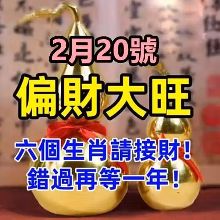 2月20號偏財大旺,六個生肖請接財!!錯過再等一年!