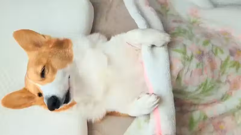 網友拍下《剛睡醒的柯基犬》腿短狗狗想要伸展一下的動作太可愛惹