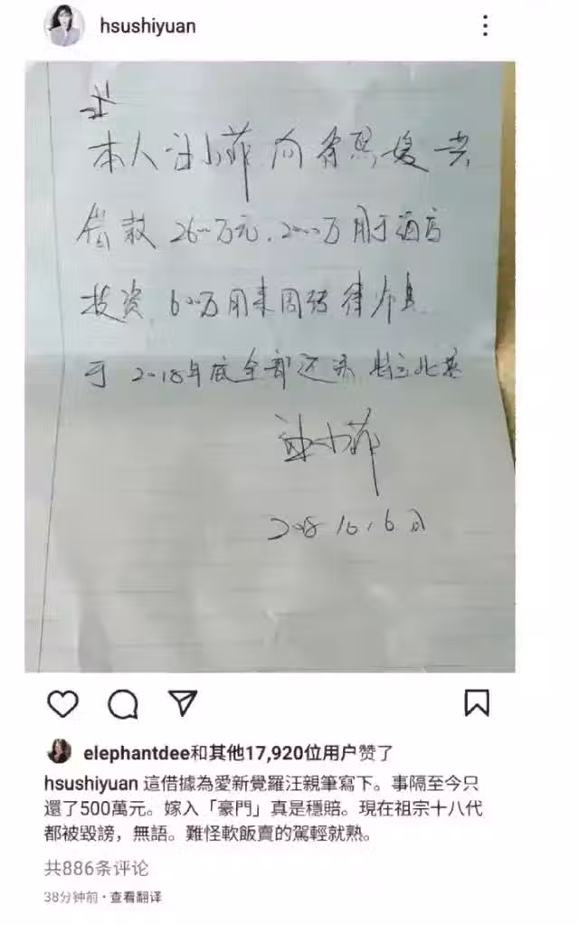 台媒還報道說,因為汪小菲欠債不還,拒付贍養費,導致大S最後幾年經濟狀況被拖垮,不得不過節約的生活。