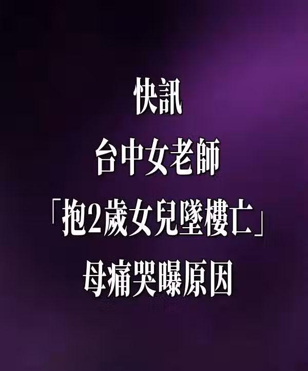 快訊/台中女教師「抱2歲女兒墜樓亡」!母痛哭曝原因!
