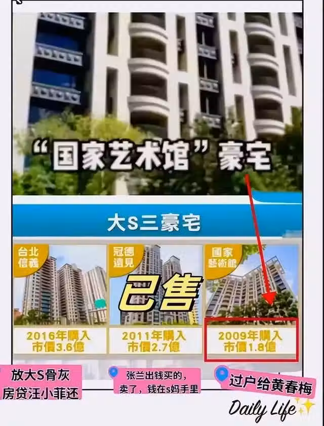 大S還沒去世的時候曾發文表示這兩棟豪宅都是她貸款購置的,汪小菲只負責挑好,還曬出自己還貸款的銀行流水。
