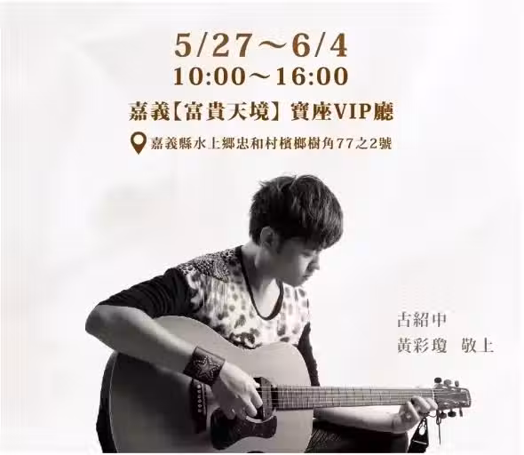 家屬也低調替古家齊舉辦告別追思會,從5/27至6/4一連9天,地點位在嘉義水上鄉富貴天境。