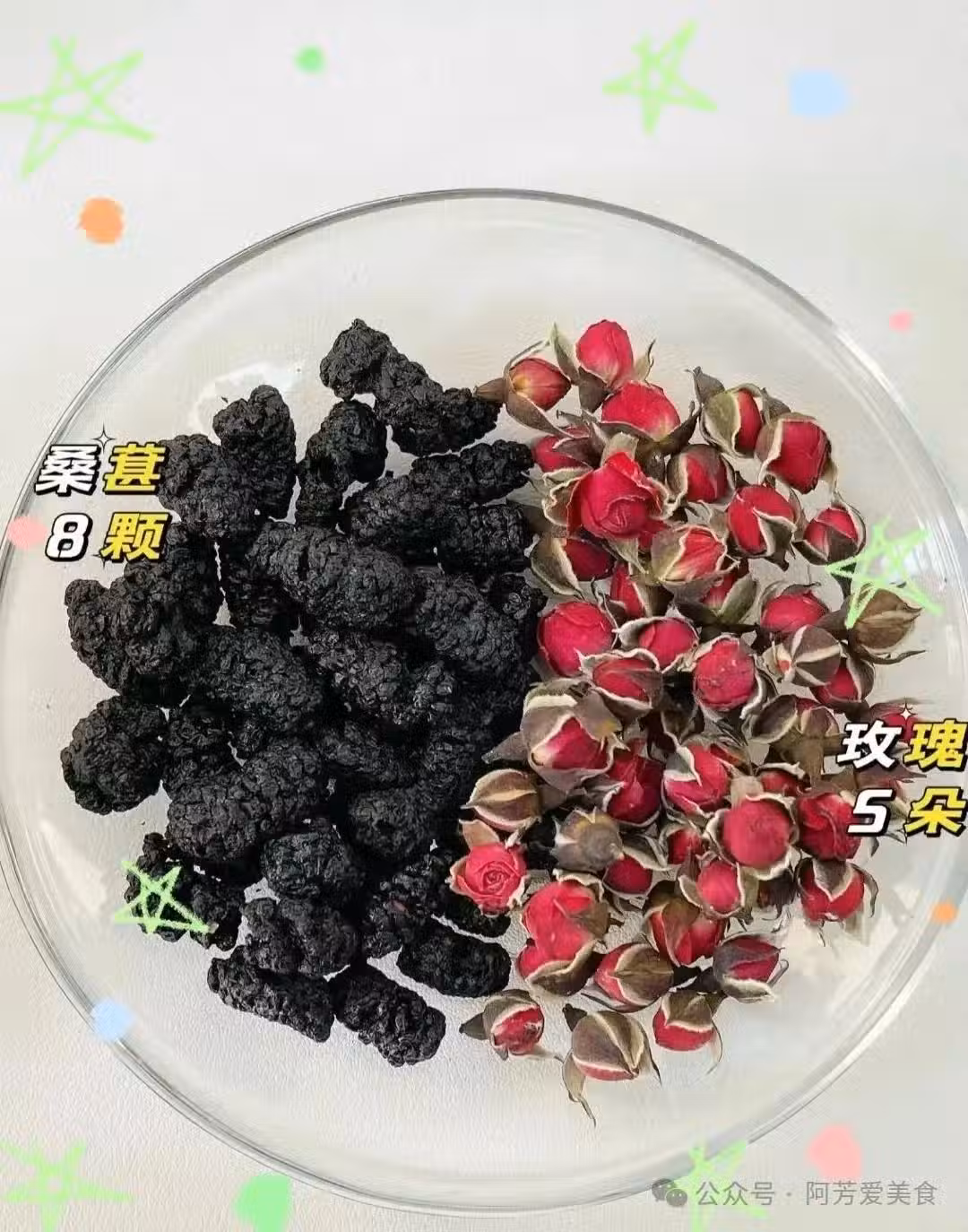 桑葚和玫瑰的搭配非常的好喝,玫瑰花香濃郁,搭配桑葚乾的清香,喝了一口惹人忍不住還想喝下一口!