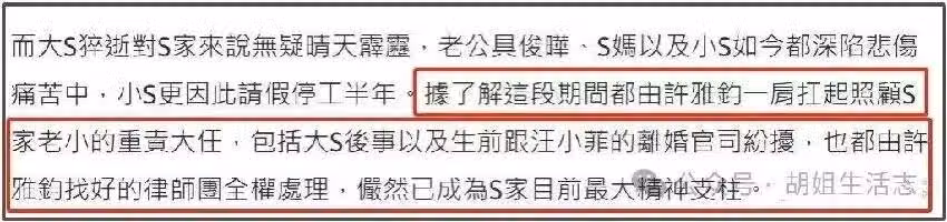 最後是S家還要仰仗許雅鈞挑大樑,站出來和汪小菲打孩子的撫養權大S遺產的爭奪大戰。