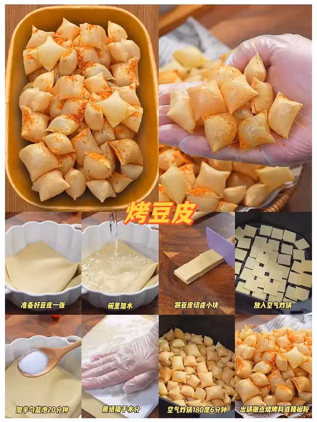 素菜做出了烤肉氣勢!豆皮切方形或者三角串串,烤到起泡膨脹,撒孜然辣椒麵或者燒烤料。追世界盃時我靠它幹掉了三箱啤酒...