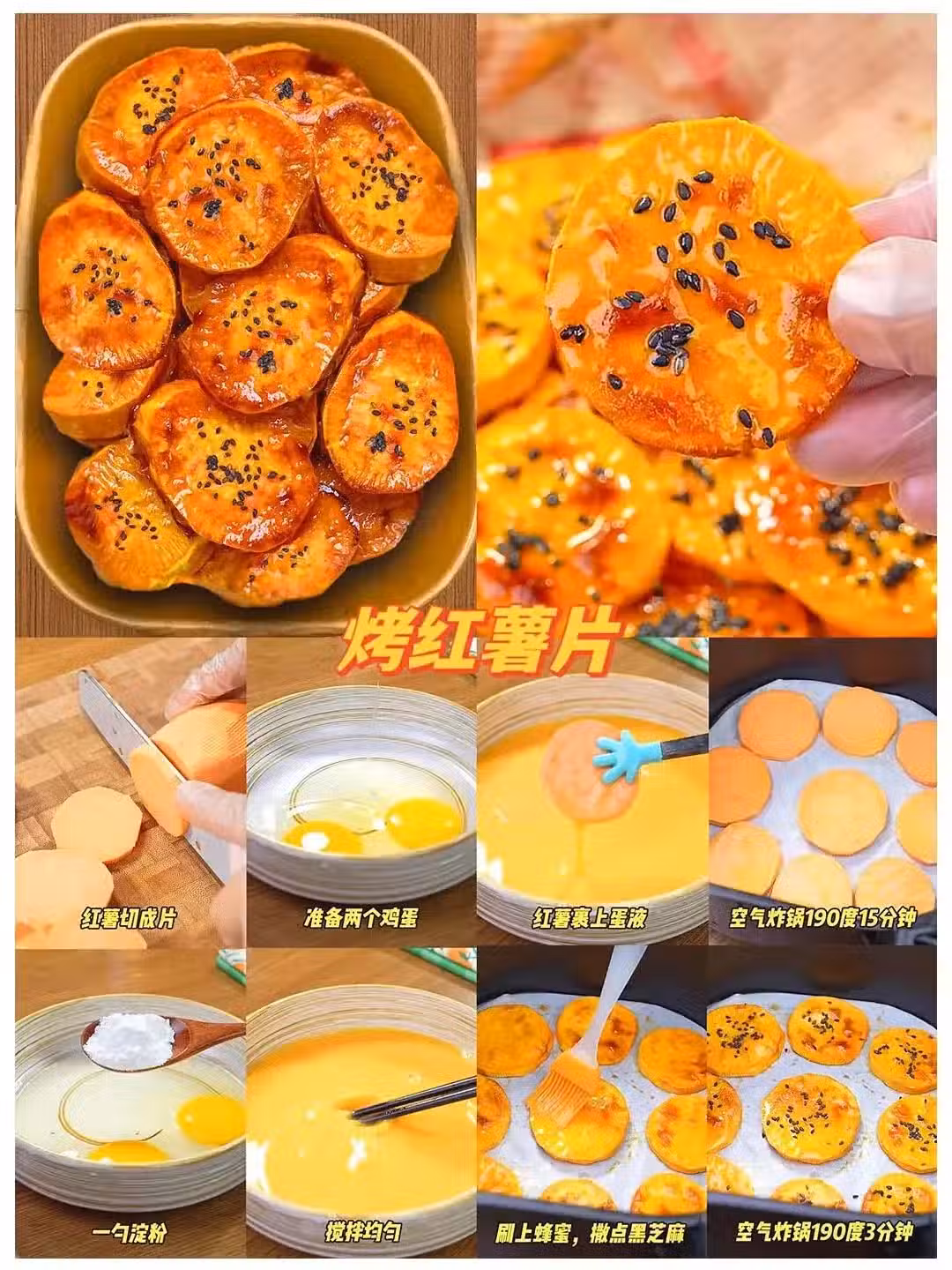 可以用蜜薯,也可以用紫薯玩混搭!切薄片裹上雞蛋液,烤成薯片PLUS版。辦公室帶飯被圍觀,同事說我在吃"蔬果系美甲片"?