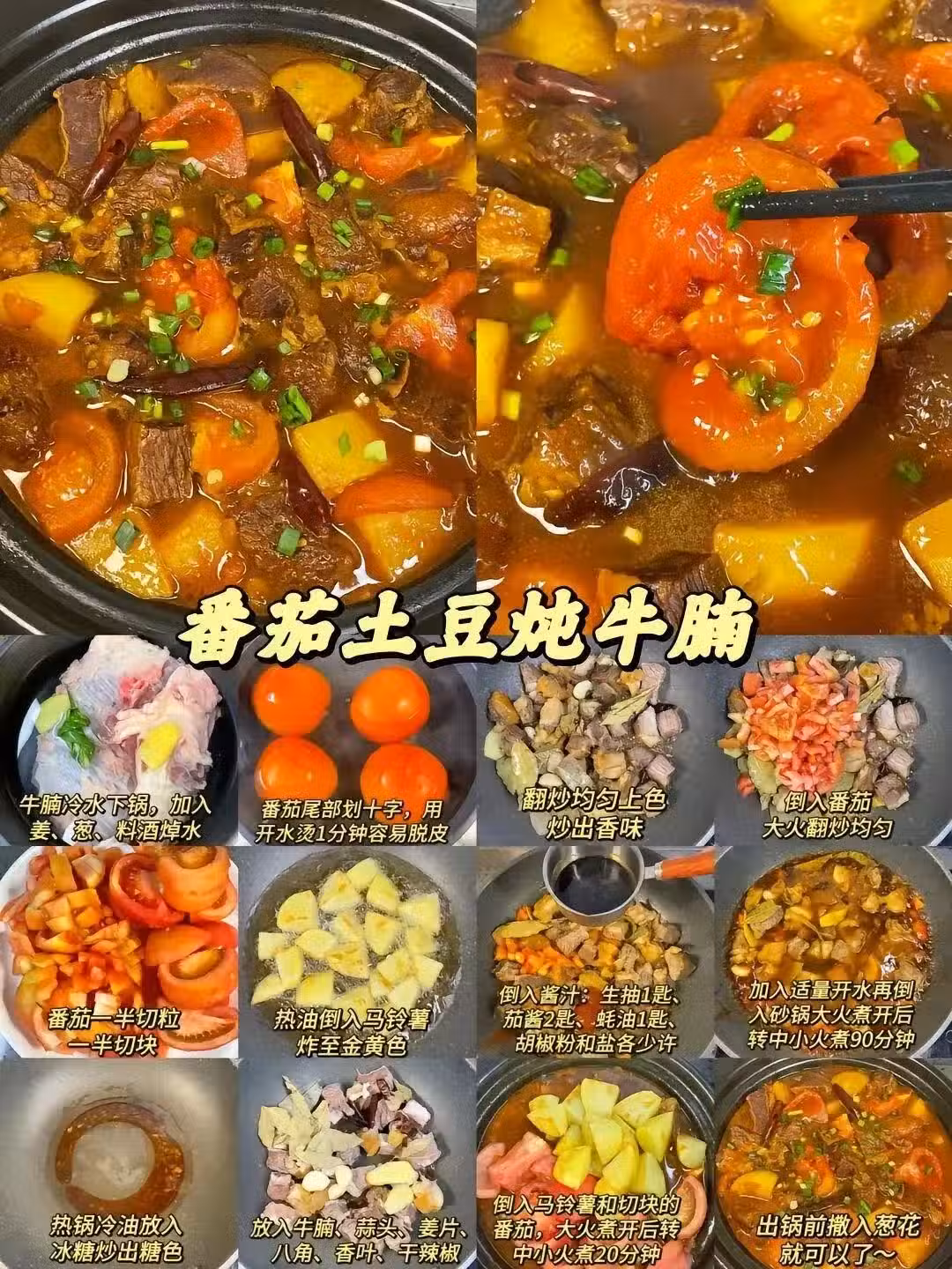 靈魂湯汁能下一鍋飯的叛徒,牛腩焯水後和番茄炒出沙,土豆塊燉到邊緣融化。