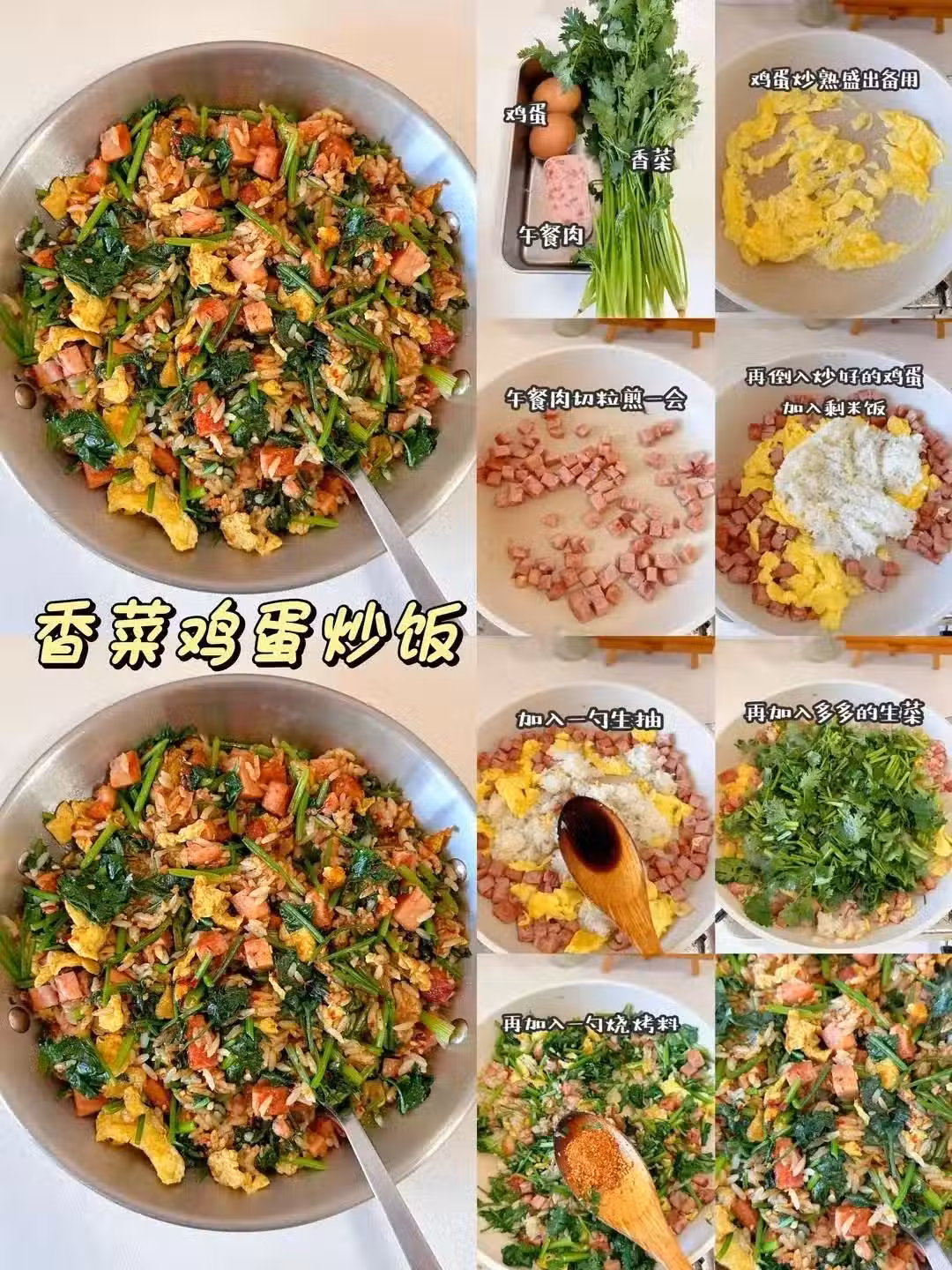香菜殺手鐧來了!雞蛋炒碎,剩飯扒拉散,關火前撒一大把香菜碎,用餘溫逼出香氣。恨的人繞道走,愛的人直接抱著鍋炫——香菜配炒飯,快樂翻三番!