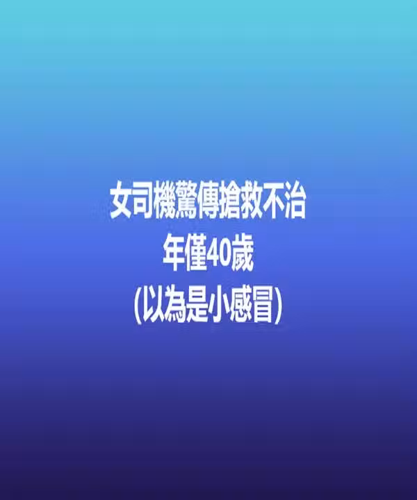 快訊 / 女司機驚傳搶救不治年僅40歲 (以為是小感冒)