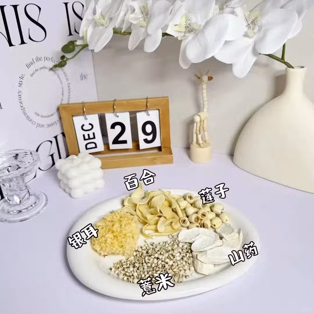 銀耳1朵、蓮子10克、百合10克、山藥3塊、冰糖適量