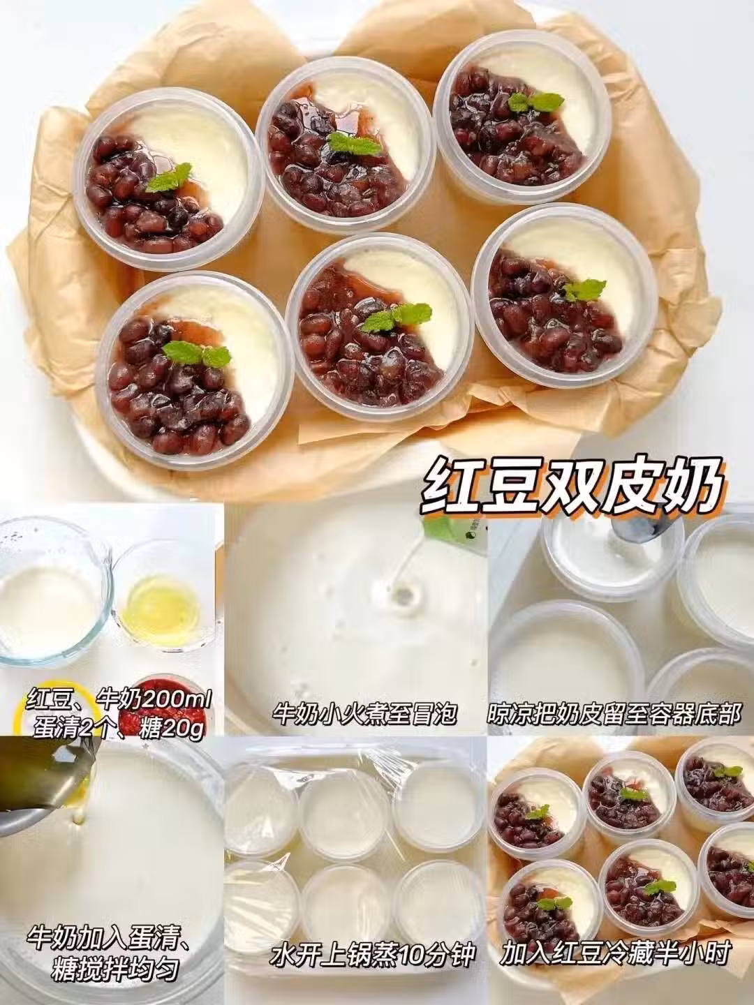 廣東阿嬤看了直呼行家,牛奶+蛋清+糖攪勻蒸10分鐘,冷藏後鋪層蜜紅豆。 滑嫩得像在吃雲朵,重點是裝進梅森罐超抗顛簸,坐過山車都能穩如老狗(別試)。