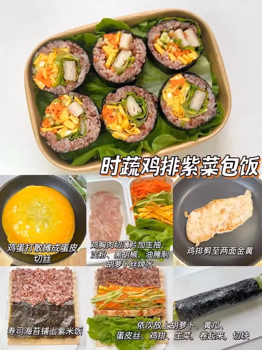韓劇女主的野餐密碼,剩米飯鋪紫菜上,碼黃瓜胡蘿蔔雞排條,卷緊切開。 秘訣是雞排要用照燒醬腌過,刀工爛的直接裹成巨型飯糰,美其名曰「狂野派手作」。