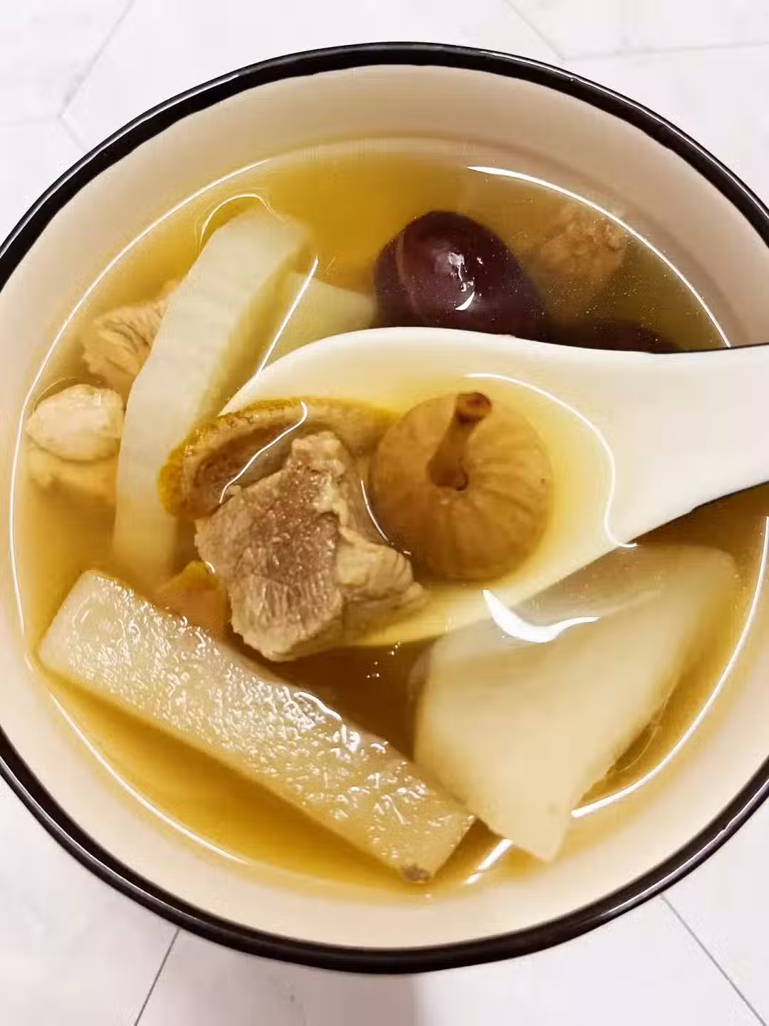 現在這個季節,蘿蔔又便宜又清甜,搭配上能理氣健脾的陳皮,還有清熱潤腸的無花果一起,再切點瘦肉進去,就成了陳皮白蘿蔔瘦肉湯。