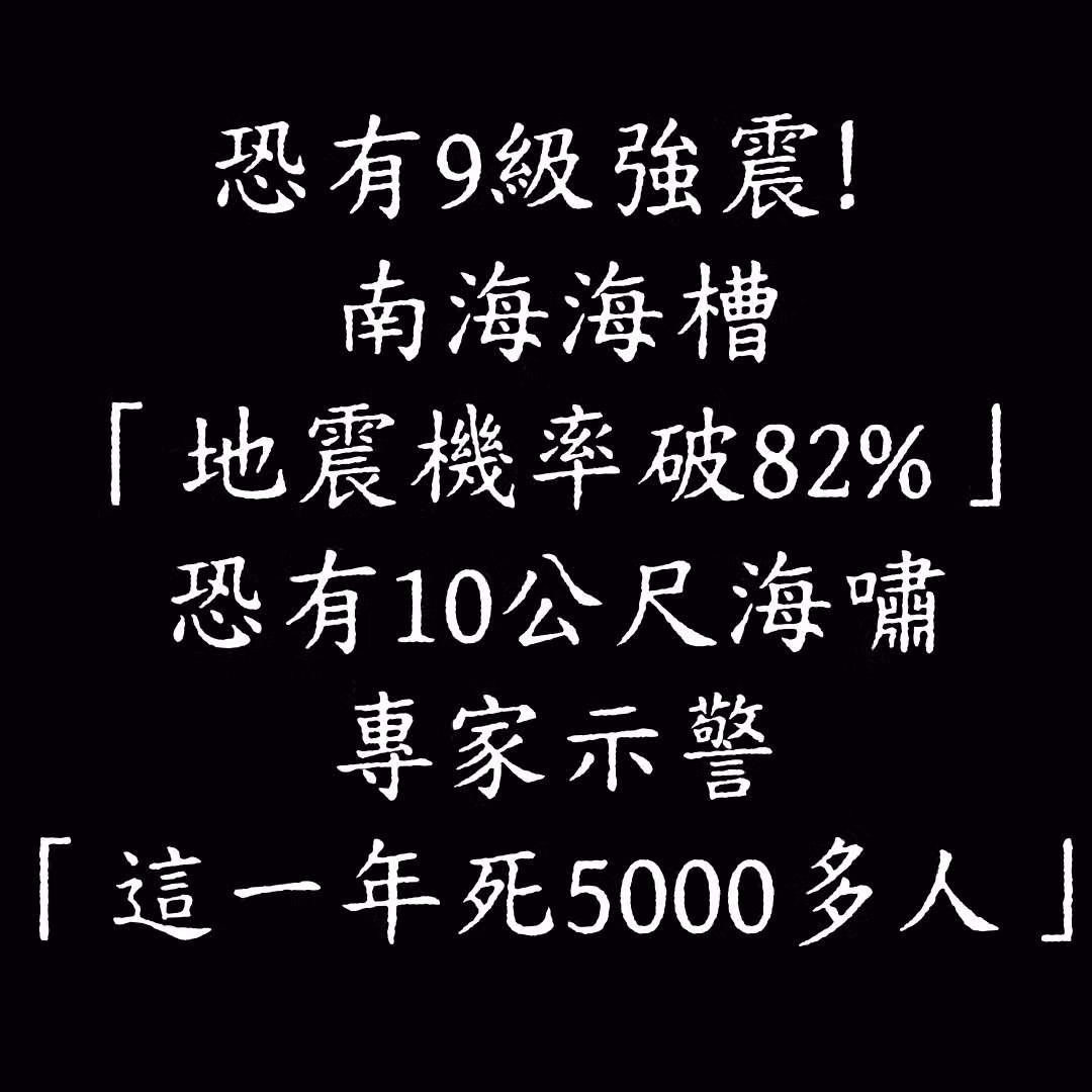 不排除9級強震!南海海槽「地震機率破82%」恐有10米海嘯...專家示警:「這一年死了5000多人」