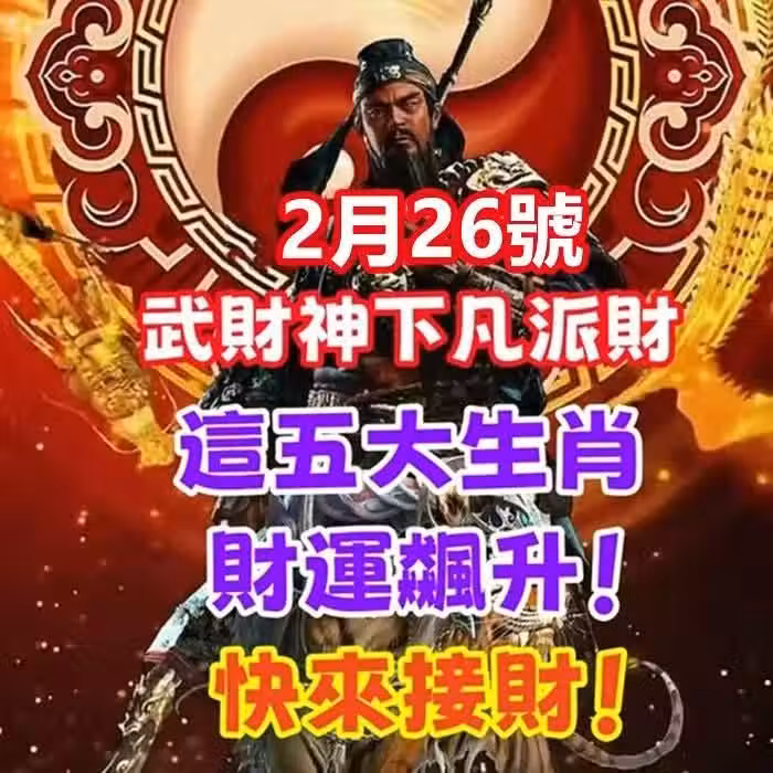 2月26號武財神下凡派財,這五大生肖財運飆升!快來接財!