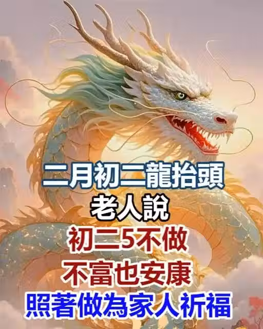 二月初二龍抬頭,老人說:「初二5不做,不富也安康」,照著做為家人祈福