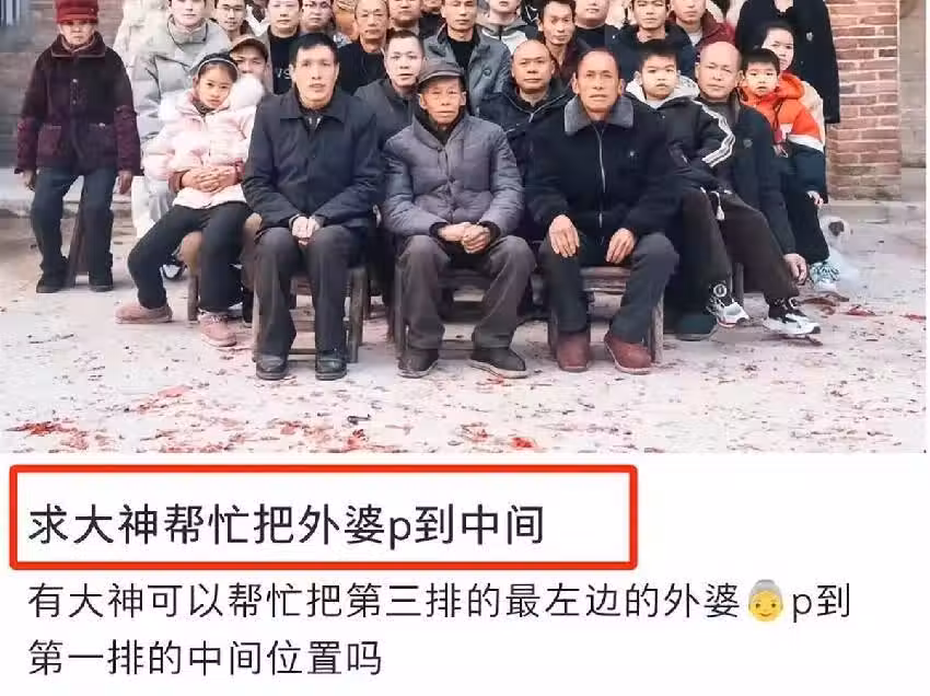本來她將這張全家福發到網絡上並不是為了紀念感嘆,而是想讓大家幫忙P圖。
