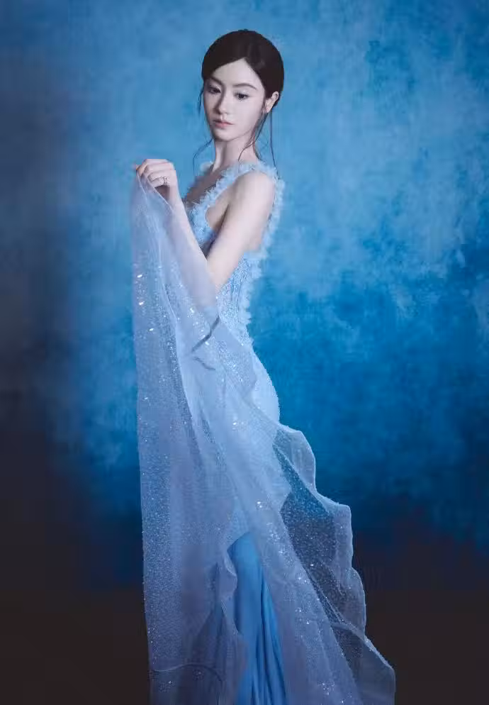 禮裙的剪裁通常注重線條感,能夠很好地修飾身材。毛曉慧的藍色禮裙可能採用了修身設計,突出她的身材曲線,同時又不失優雅。