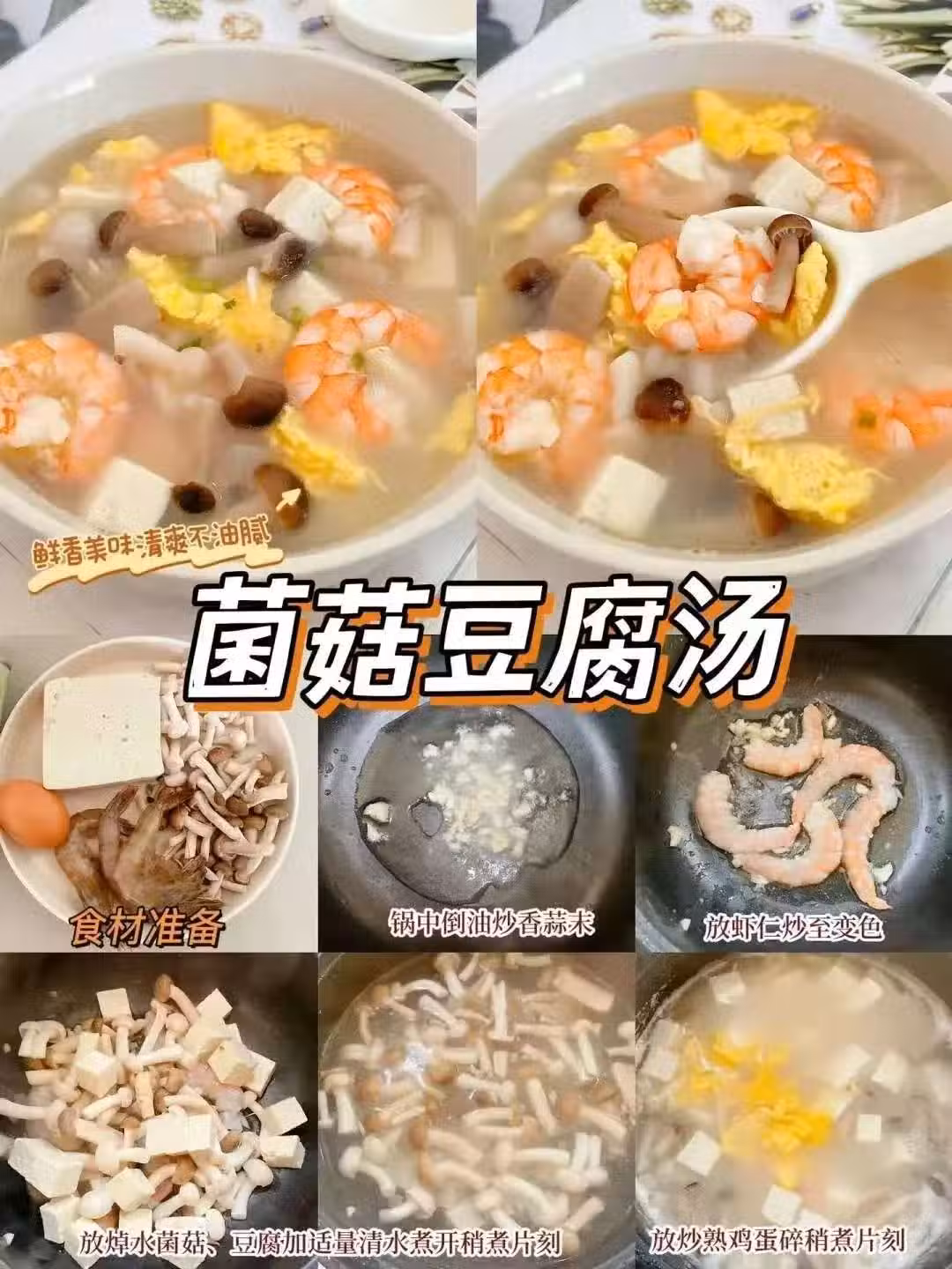 加入焯水後的菌菇和豆腐,再加適量清水煮開。