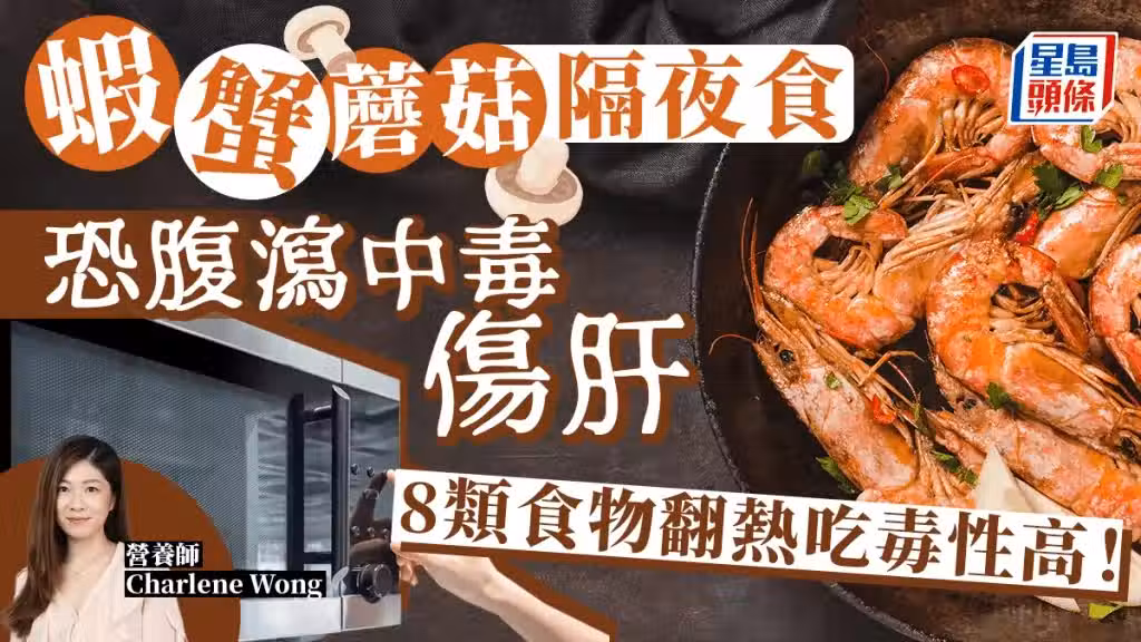 不是所有食物都可以放隔夜?蝦蟹隔夜再吃,可致食物中毒?有營養師指出,部分食物不適合隔夜或翻熱食用,否則可致腹瀉、肝臟受損、食物中毒。她指出,有8類食物放隔夜或以翻熱再吃,會令細菌、毒素增加,影響健康。