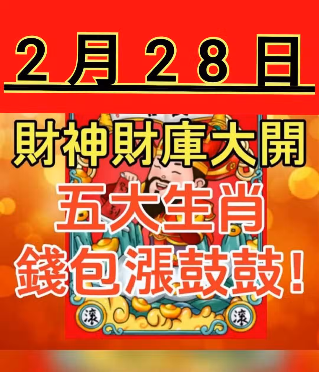 2月28日 財神財庫大開 「 五大生肖 」 荷包漲鼓鼓